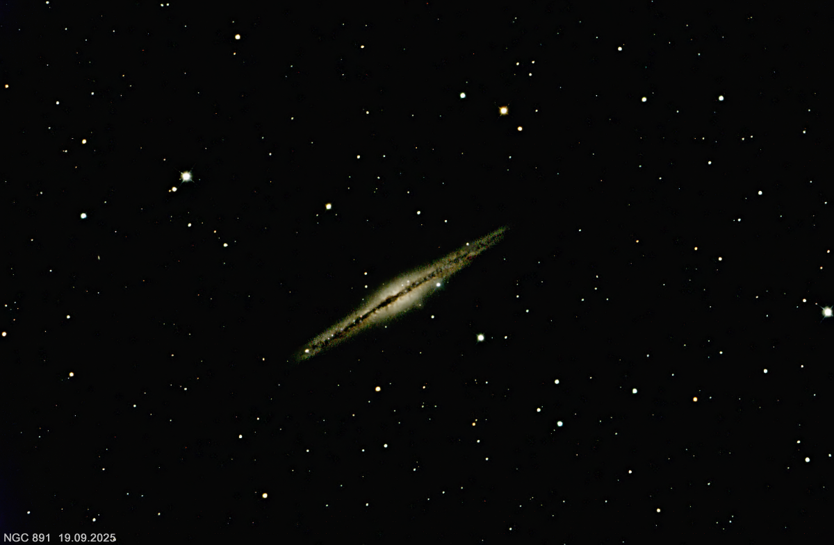 NGC 891 Caldwell 23, die Silberne Splittergalaxie aufgenommen am 19.09.2025 mit RC-Teleskop 1600mm, Omegon veTEC 1600C Kamera 40x90sek